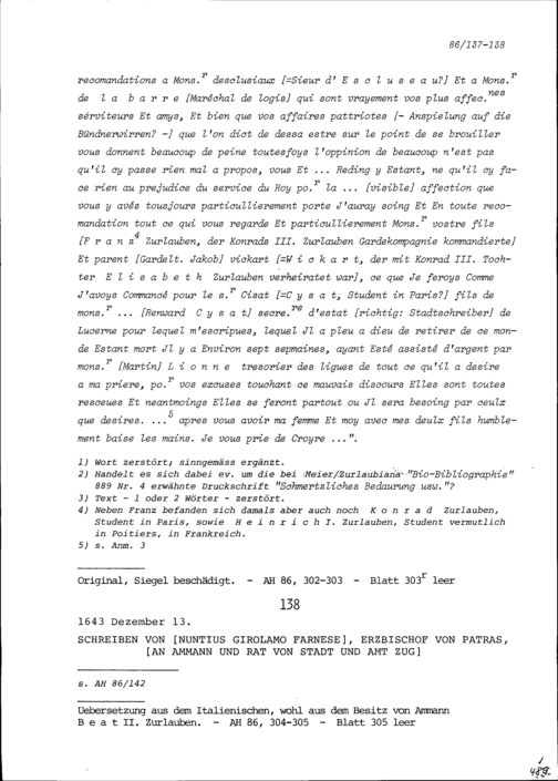 Schreiben von Girolamo Farnese, Nuntius und Erzbischof von Patras, an Ammann und...