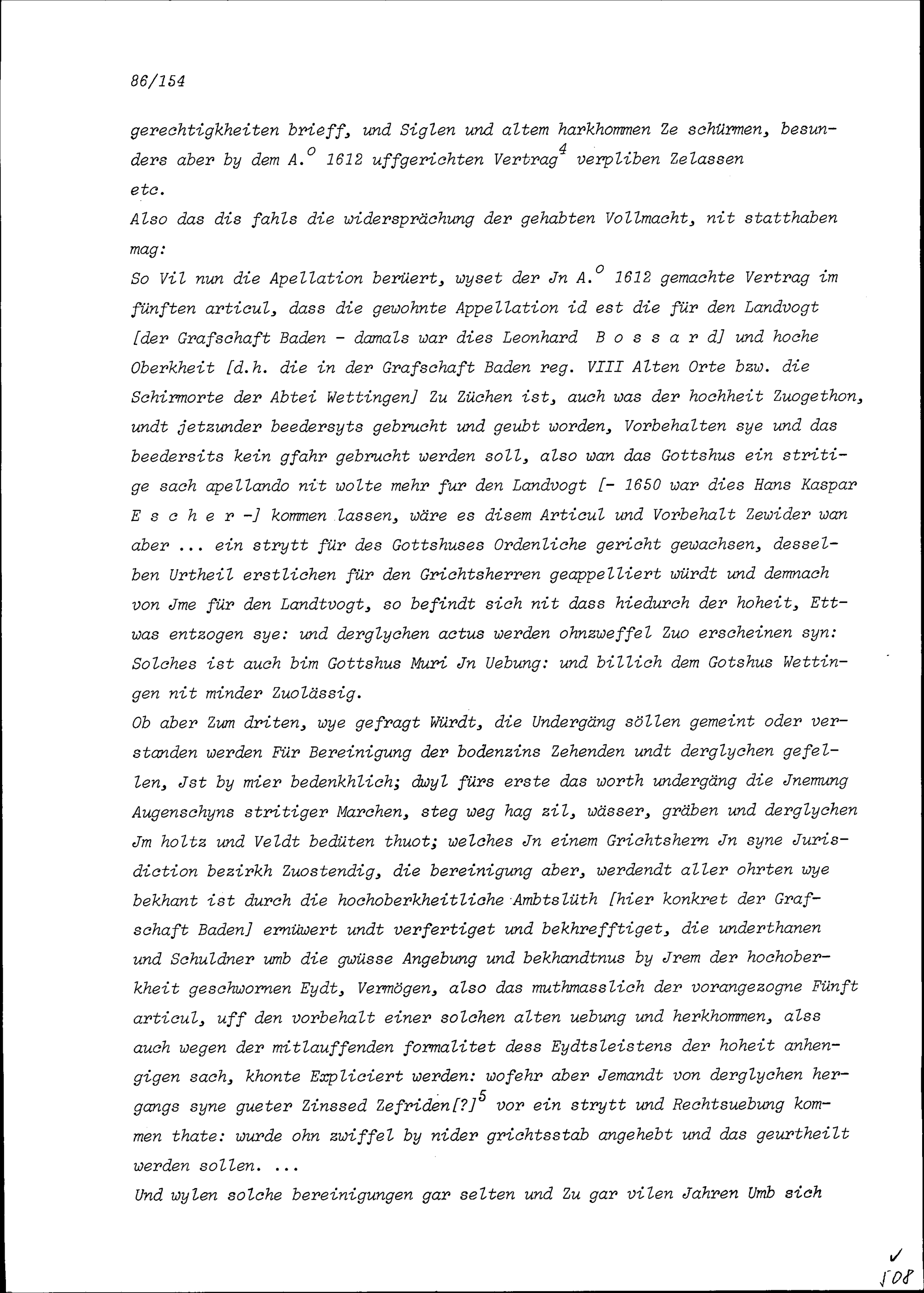 Gutachten von Beat II. Zurlauben, Stadt- und Amtrat Zug, über Rechtsstreitigkeiten zwischen der Abtei Wettingen einerseits und der Grafschaft Baden anderseits