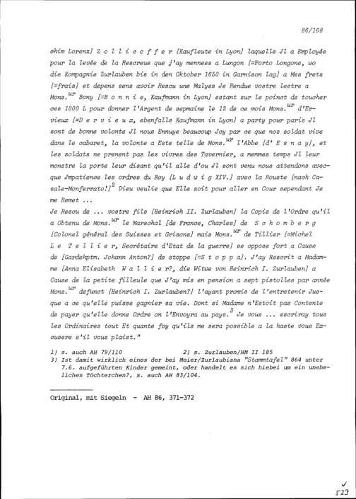 Schreiben von Hans Jakob Hermann, Gardefähnrich, an Beat II. Zurlauben, Altammann...