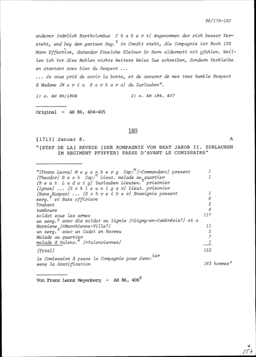 Mannschaftsbestand der Kompanie von Beat Jakob II. Zurlauben im Regiment Pfyffer