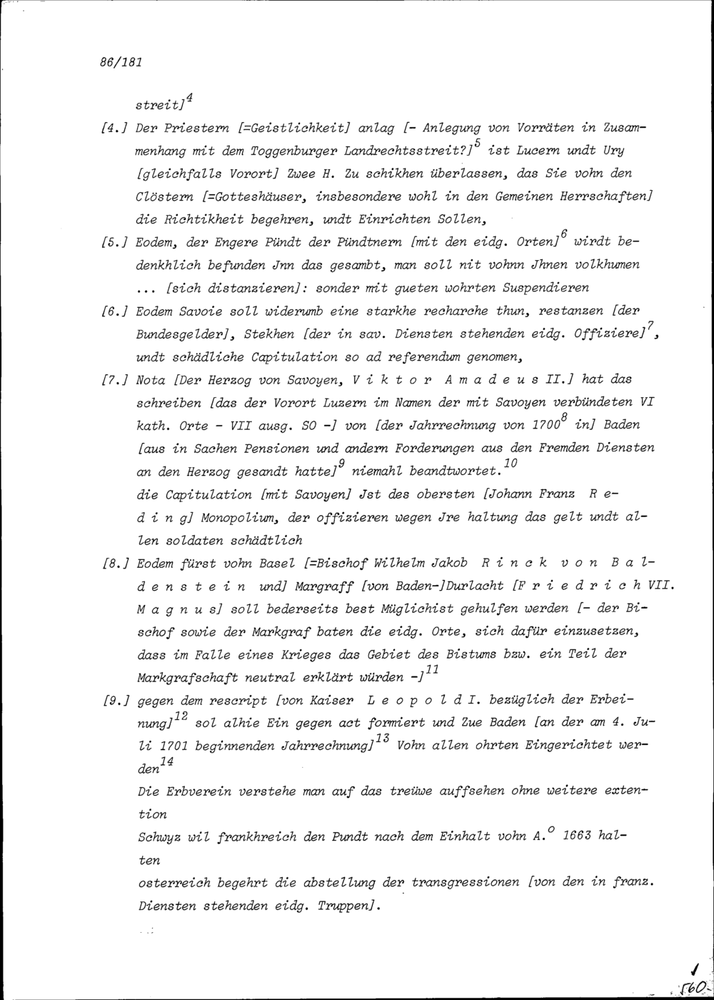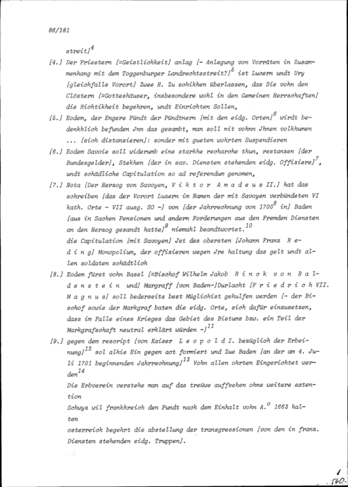 Notiz von Beat Kaspar Zurlauben, Zuger Tagsatzungsgesandter, über die Tagsatzung der Sechs Katholischen Orte sowie der Abtei Sankt Gallen vom 15. bis 18. Juni 1701 in Luzern