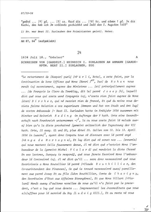 Schreiben von Heinrich I. Zurlauben, Gardeleutnant, an Beat II. Zurlauben, Ammann...