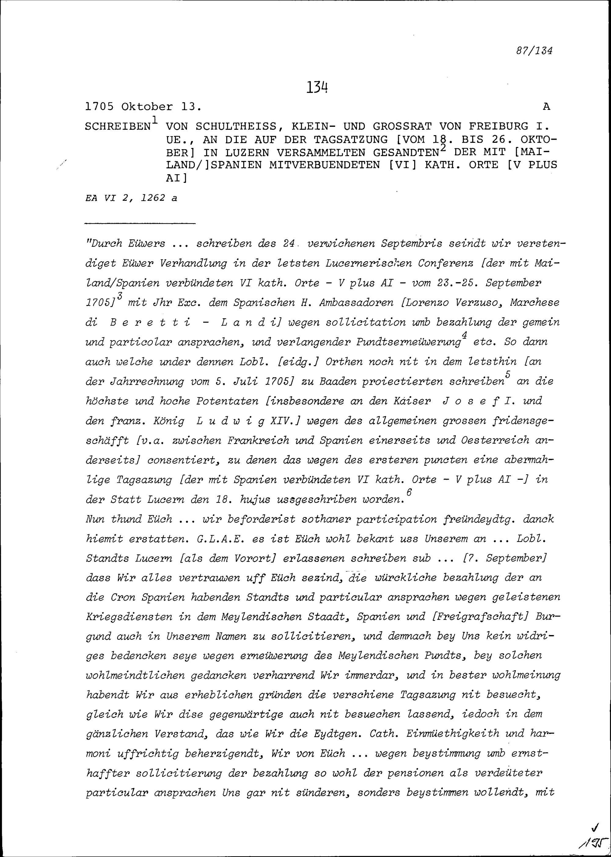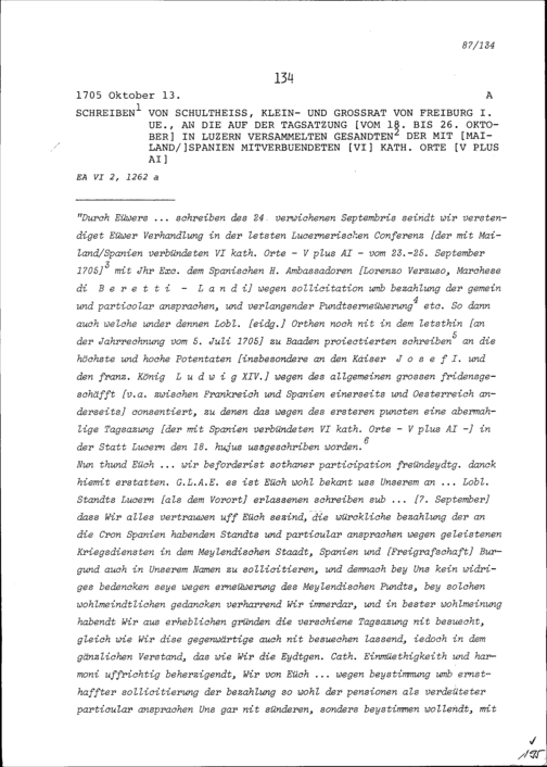 Schreiben von Freiburg im Üchtland an die mit Mailand-Spanien verbündeten Sechs Katholischen Orte