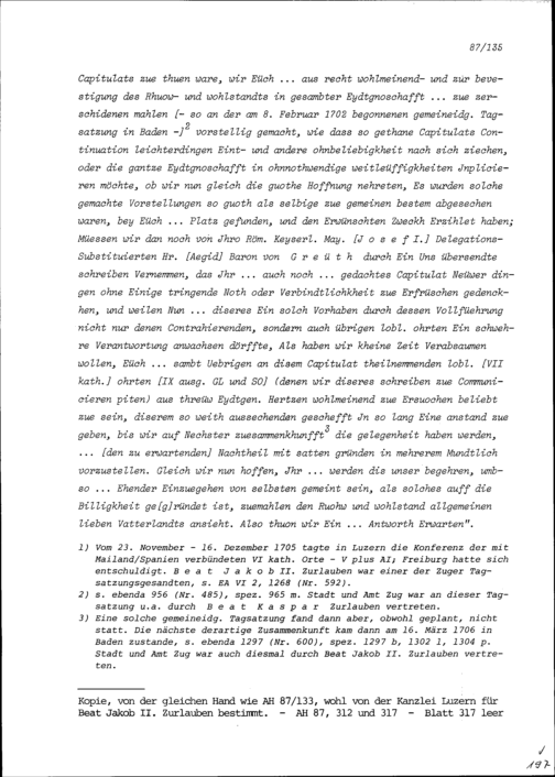 Schreiben der Neugläubigen Orte an Luzern, Vorort der Katholischen Orte