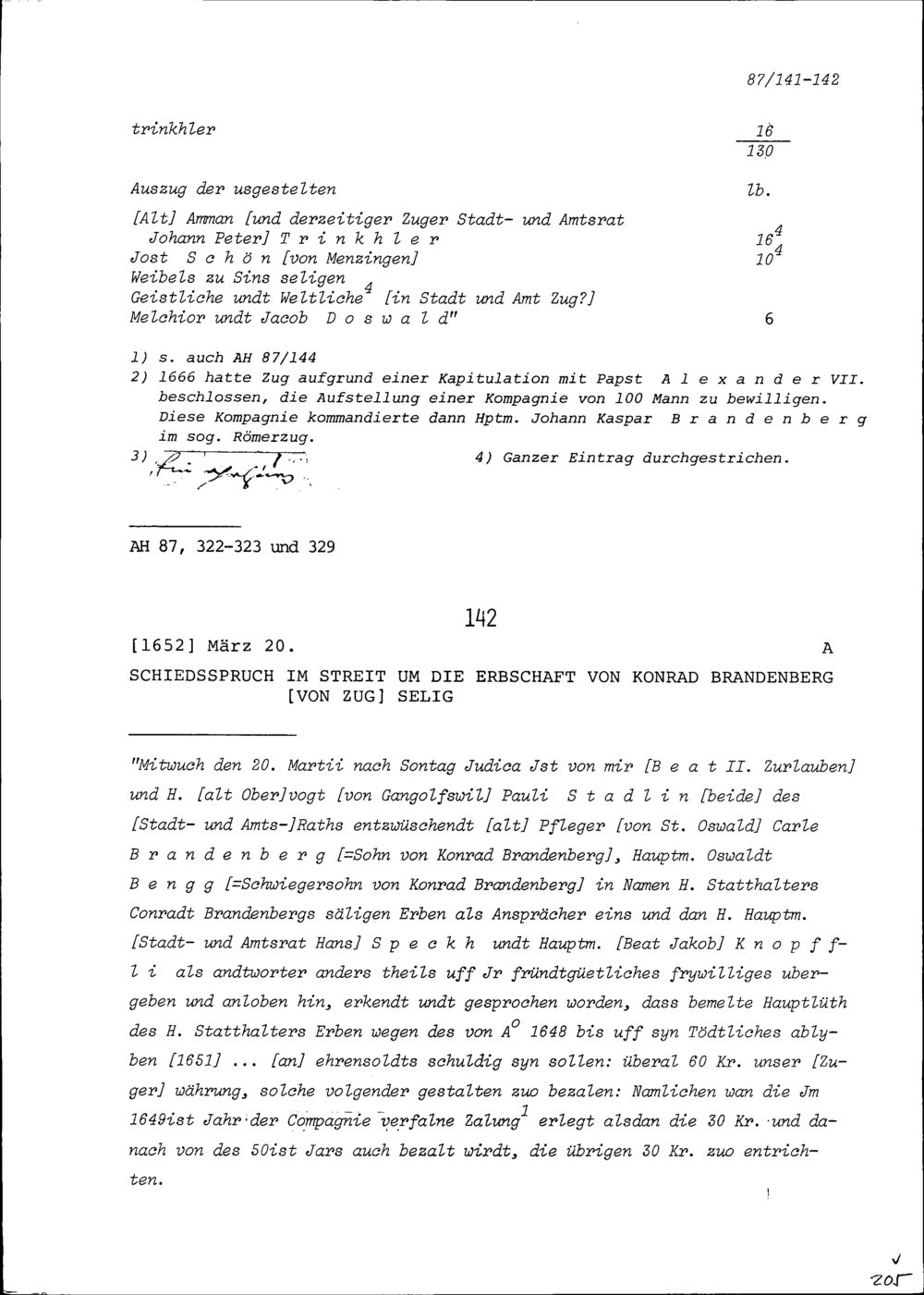 Schiedsspruch im Streit um die Erbschaft von Konrad Brandenberg von Zug, selig