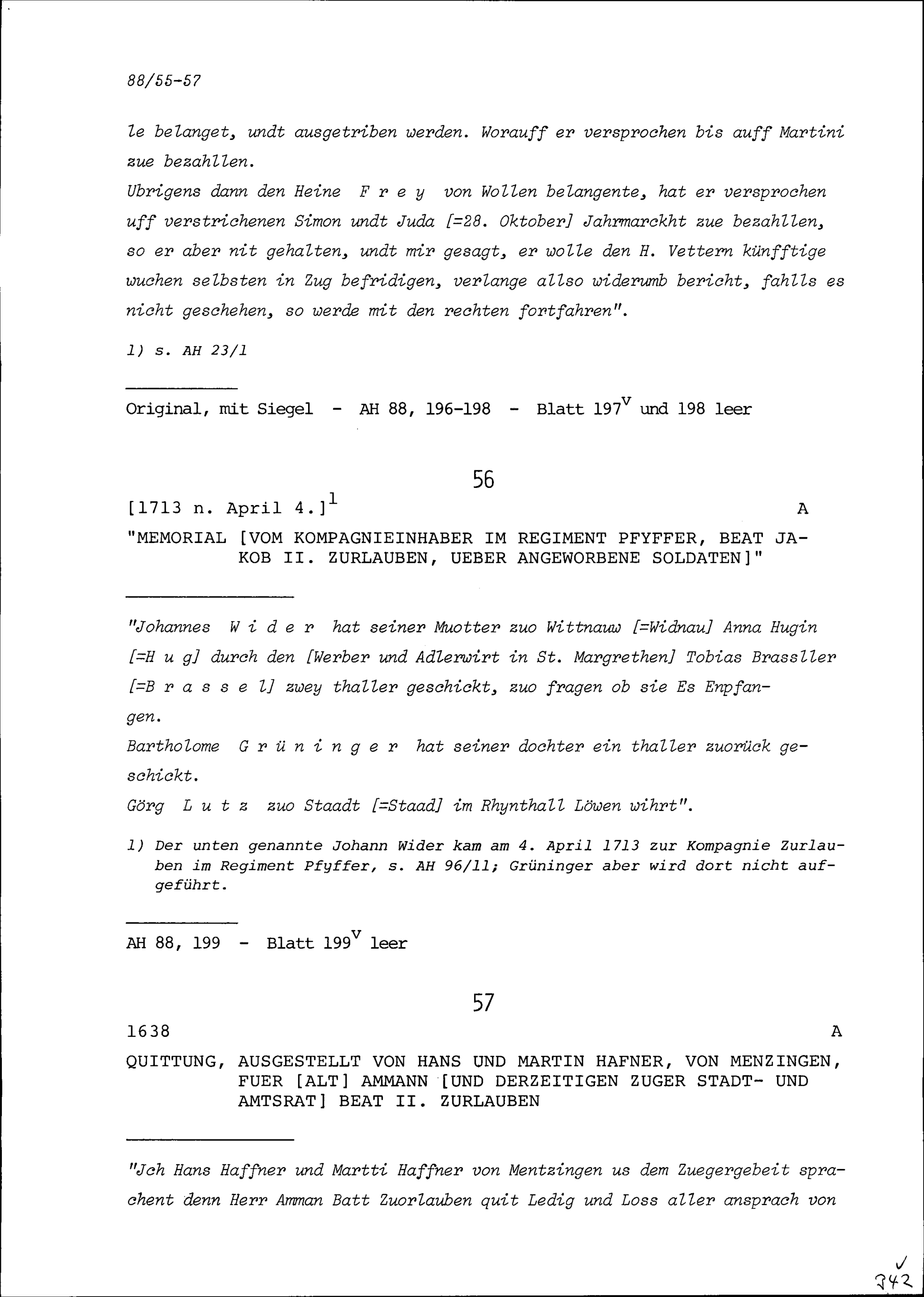 Bericht von Beat Jakob II. Zurlauben, Kompanieinhaber im Regiment Pfyffer, über angeworbene...