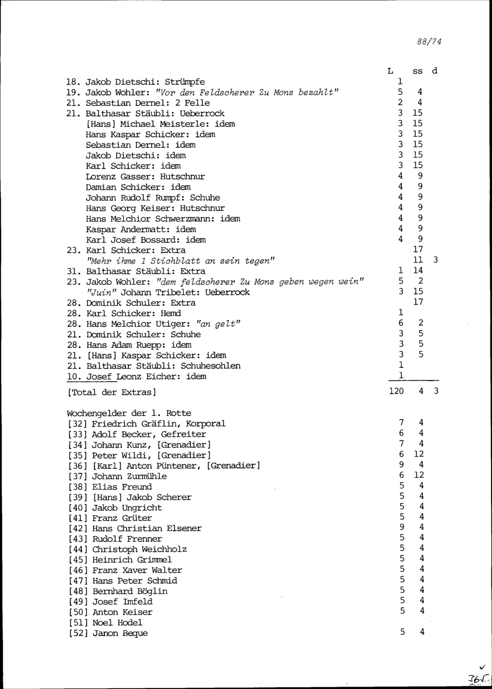Mannschaftsrodel der Kompanie von Beat Jakob II. Zurlauben im Regiment Pfyffer