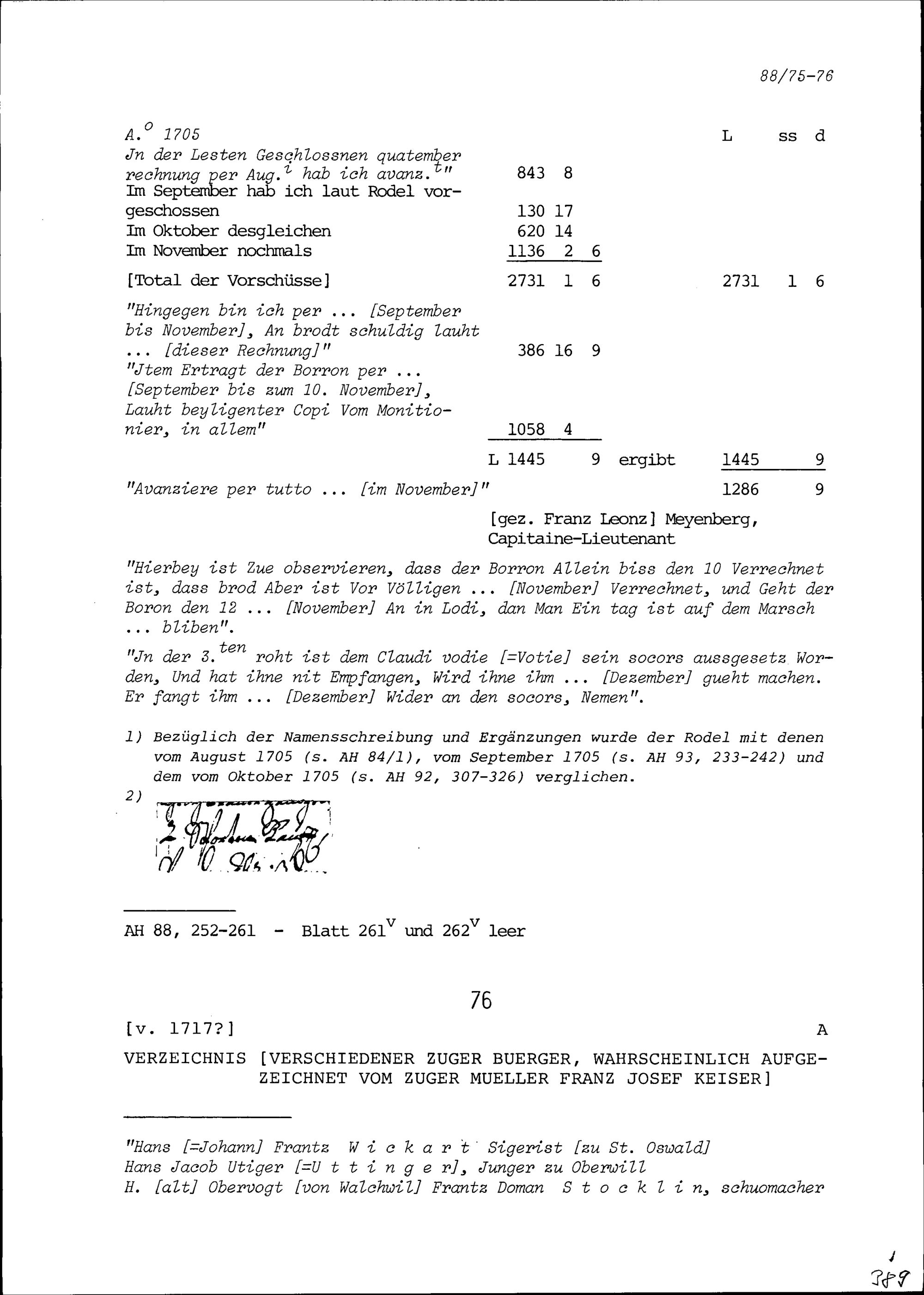 Verzeichnis verschiedener Zuger Bürger, wahrscheinlich aufgezeichnet von Franz Josef Keiser, Zuger Müller