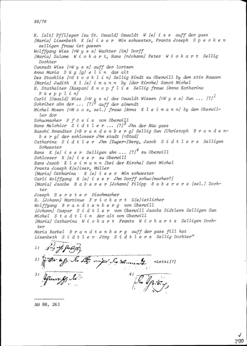 Verzeichnis verschiedener Zuger Bürger, wahrscheinlich aufgezeichnet von Franz Josef Keiser, Zuger Müller