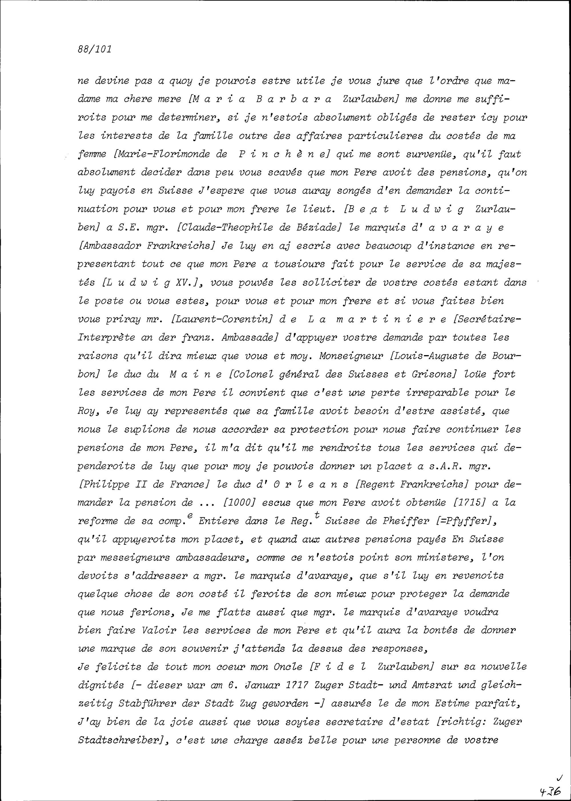 Schreiben von Beat Franz Plazidus Zurlauben, Gardehauptmann, an Heinrich Damian Leonz Zurlauben, Stadtschreiber