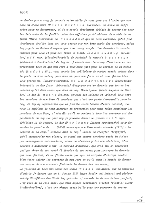 Schreiben von Beat Franz Plazidus Zurlauben, Gardehauptmann, an Heinrich Damian Leonz...