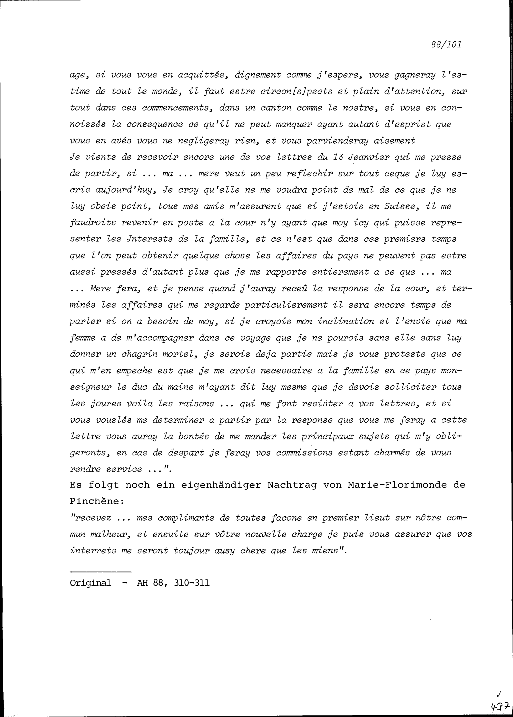 Schreiben von Beat Franz Plazidus Zurlauben, Gardehauptmann, an Heinrich Damian Leonz Zurlauben, Stadtschreiber
