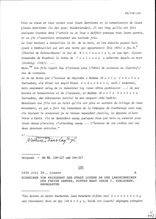 Schreiben des Kriegsrats der Stadt Luzern an Beat Jakob I. Zurlauben, Landschreiber der Freien Ämter, Bremgarten