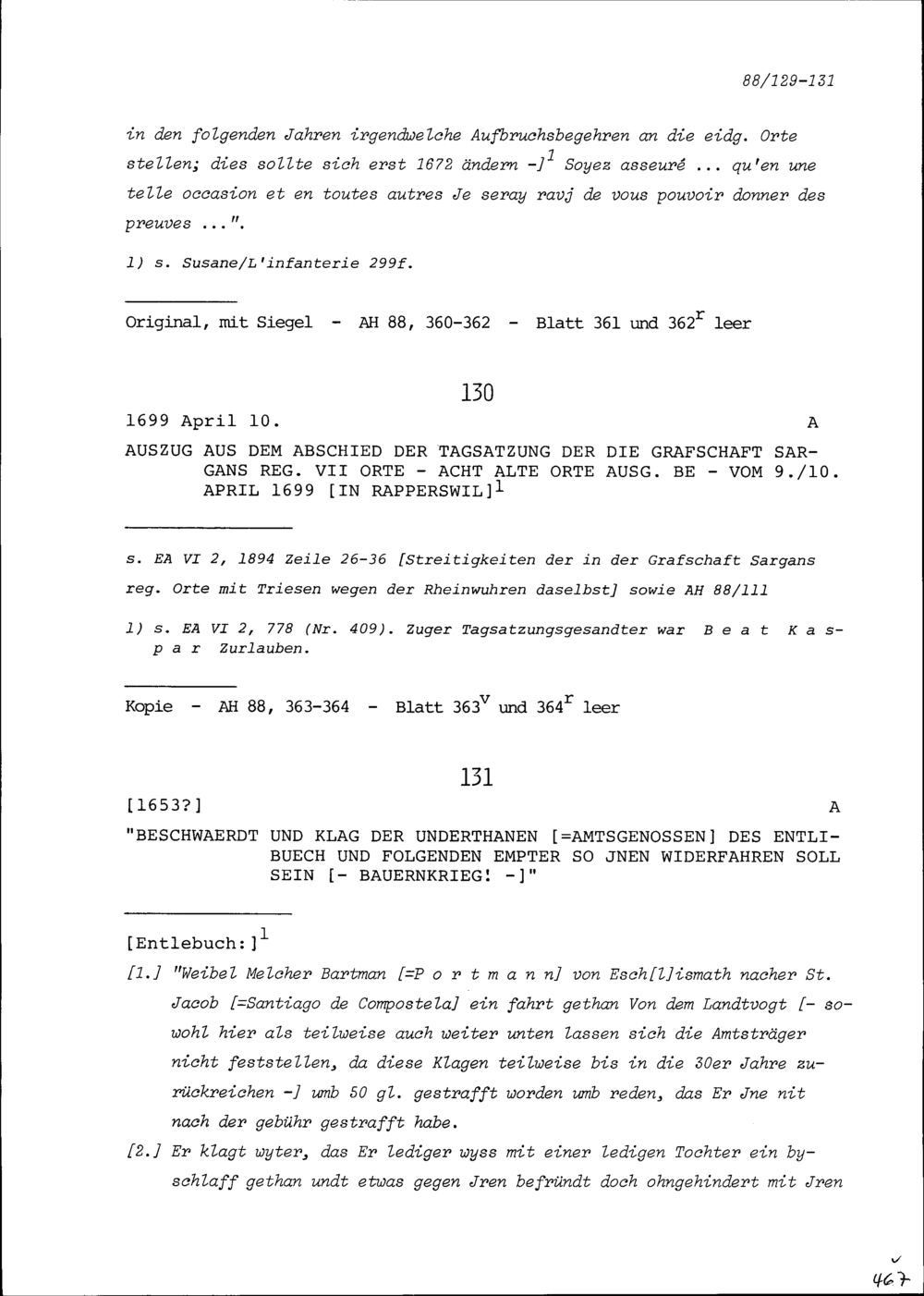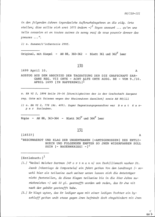 Abschied der Tagsatzung der die Grafschaft Sargans regierenden Sieben Orte vom 9. und 10. April 1699 in Rapperswil