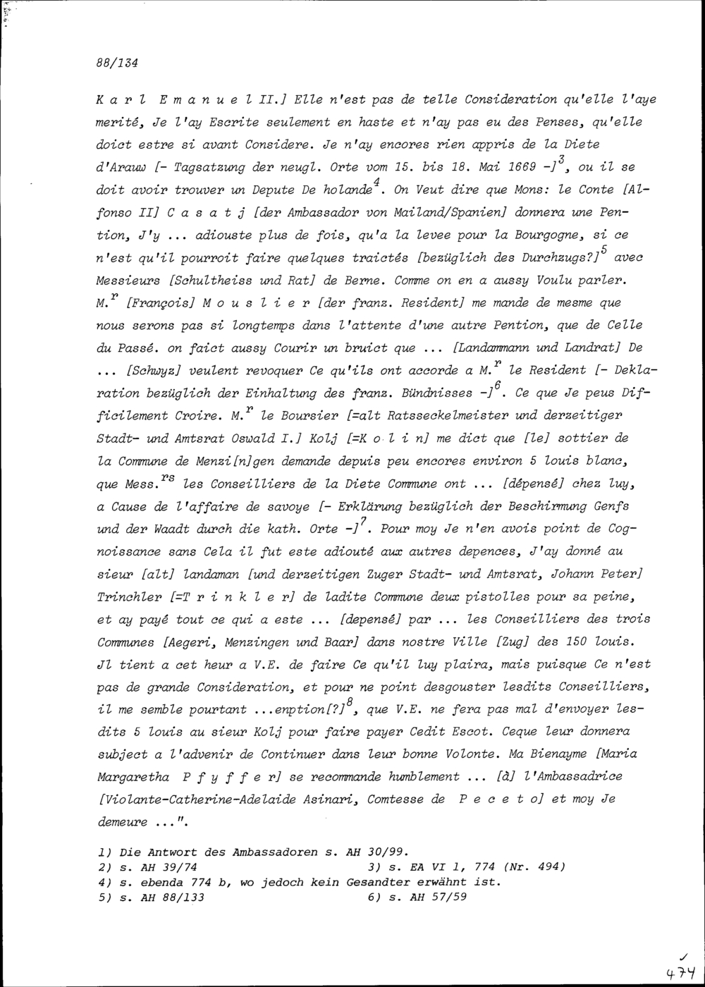 Schreiben von Beat Jakob I. Zurlauben, Statthalter Zug, an Benoît II. Cize, Baron de Grésy, Ambassador von Frankreich