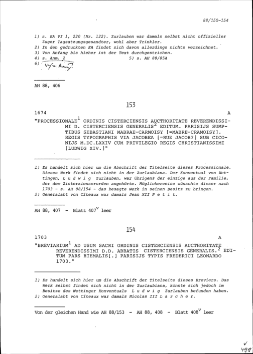 Auszüge aus dem Druck: "Processionale Ordinis Cisterciensis. Authoritate Reverendissimi D. Cisterciensis Generalis Editum." Paris, Mabre-Cramoisy, 1674, 152 S., xcii
