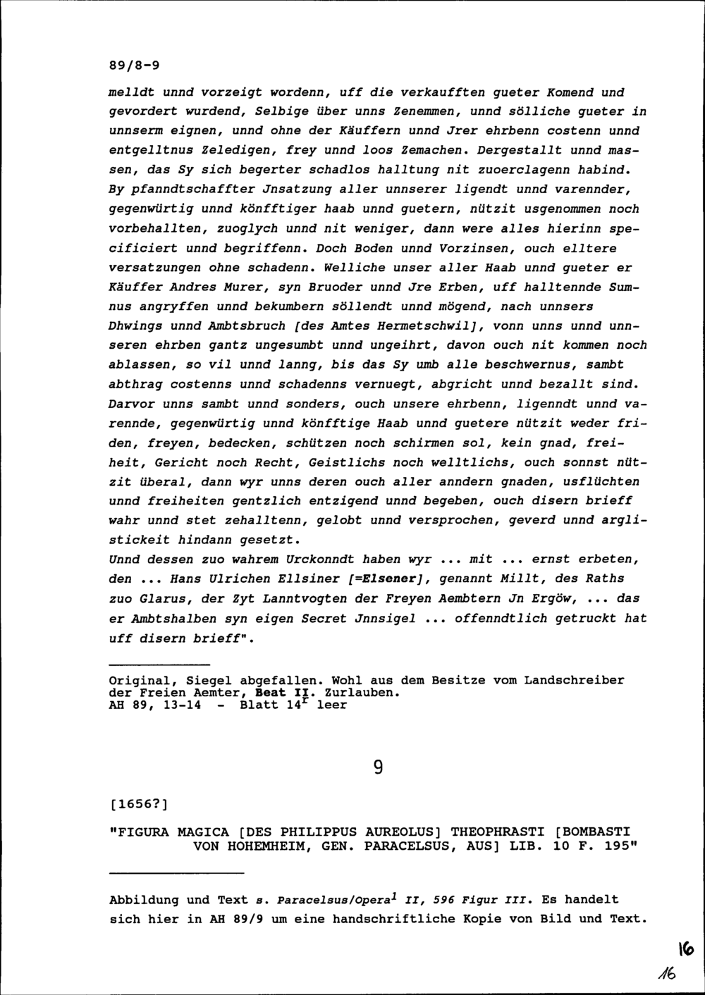 Abschrift aus: "Figura magica" des Philippus Aureolus Theophrasti Bombasti von Hohenheim, genannt Paracelsus, aus Buch 10, f. 195