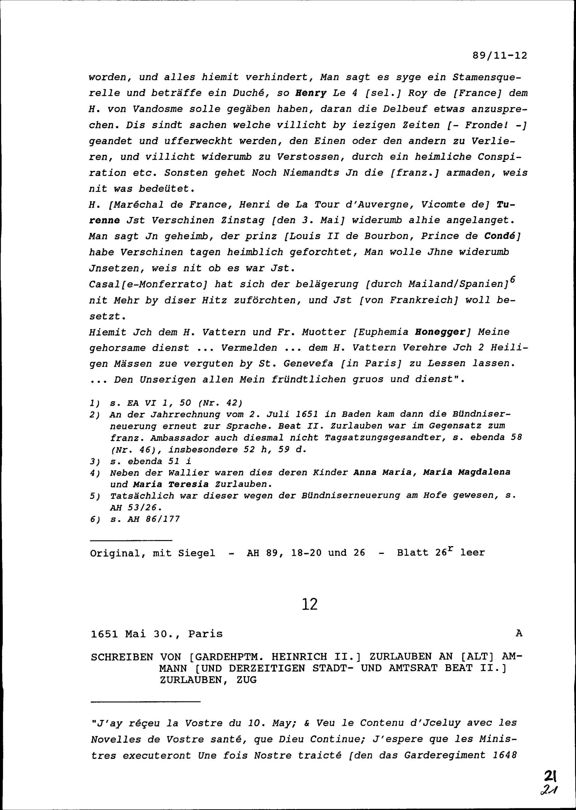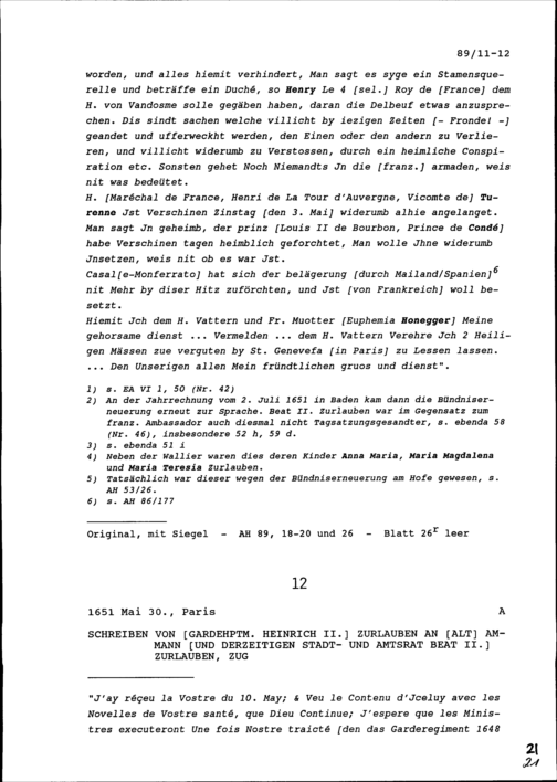 Schreiben von Heinrich II. Zurlauben, Gardehauptmann, an Beat II. Zurlauben, Altammann...
