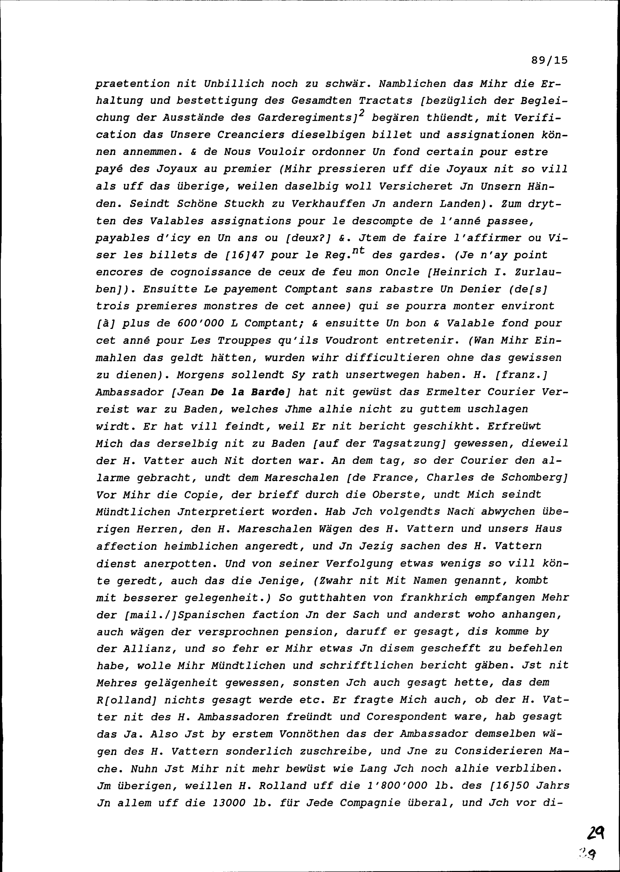 Schreiben von Heinrich II. Zurlauben, Gardehauptmann, an Beat II. Zurlauben, Stadt- und Amtrat Zug
