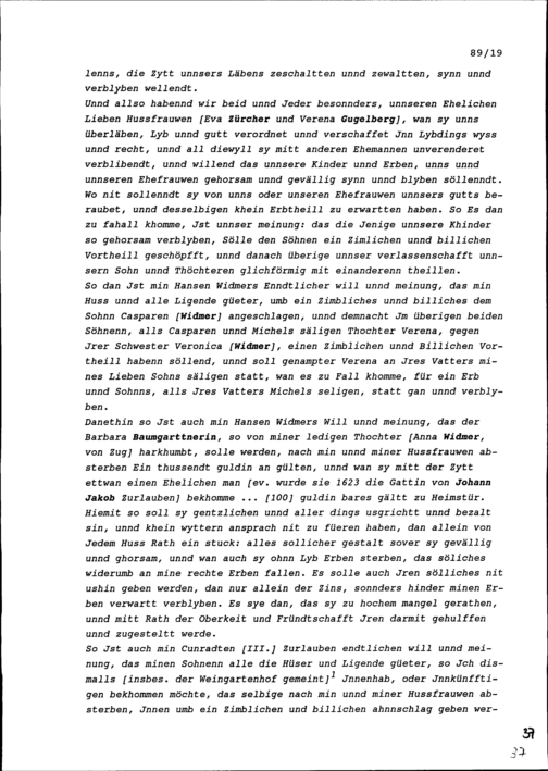 Absprache zwischen Konrad III. Zurlauben und Johann Widmer, beide von Zug, bezüglich einer allfälligen Verehelichung seines Sohns Beat II. Zurlauben mit Verena Widmer, der Enkelin von Johann Widmer