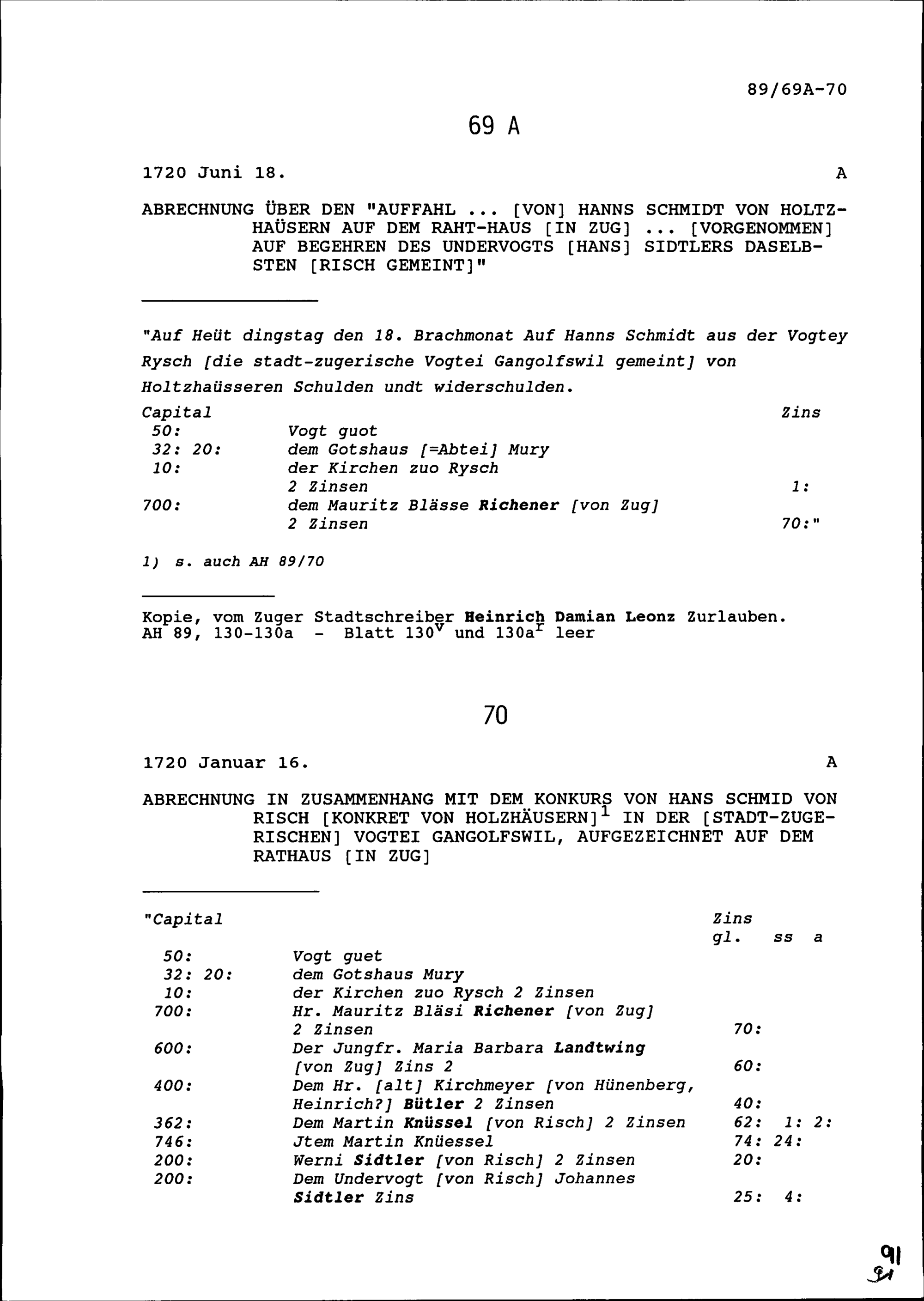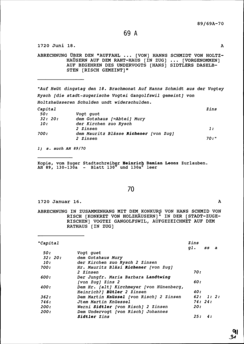 Abrechnung über den Konkurs (= Auffall) von Hans Schmid von Holzhäusern auf Begehren von Hans Sidler, Untervogt