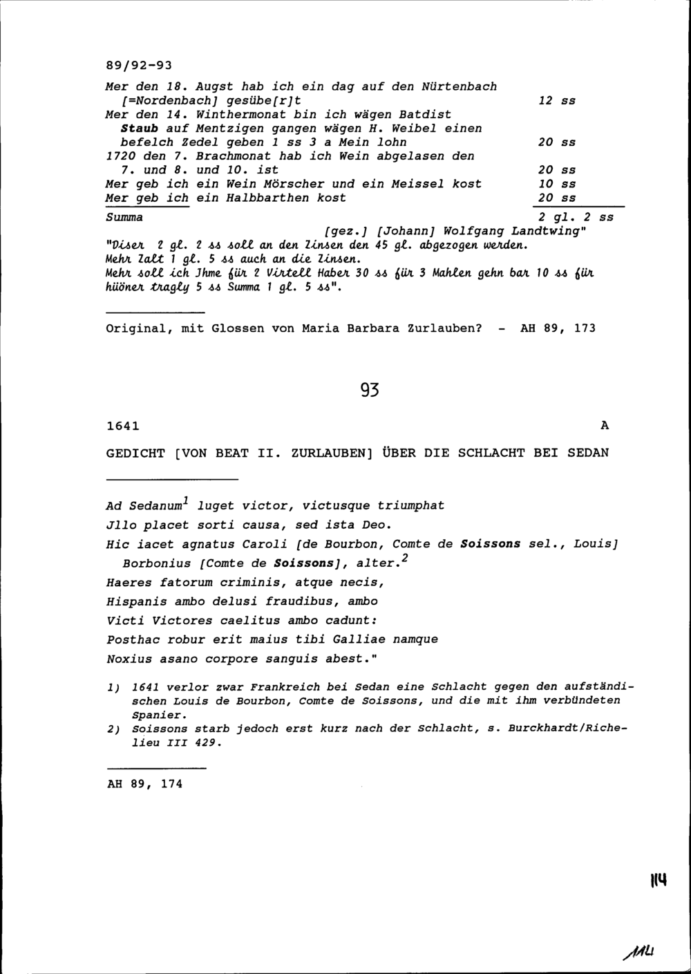 Gedicht von Beat II. Zurlauben über die Schlacht bei Sedan