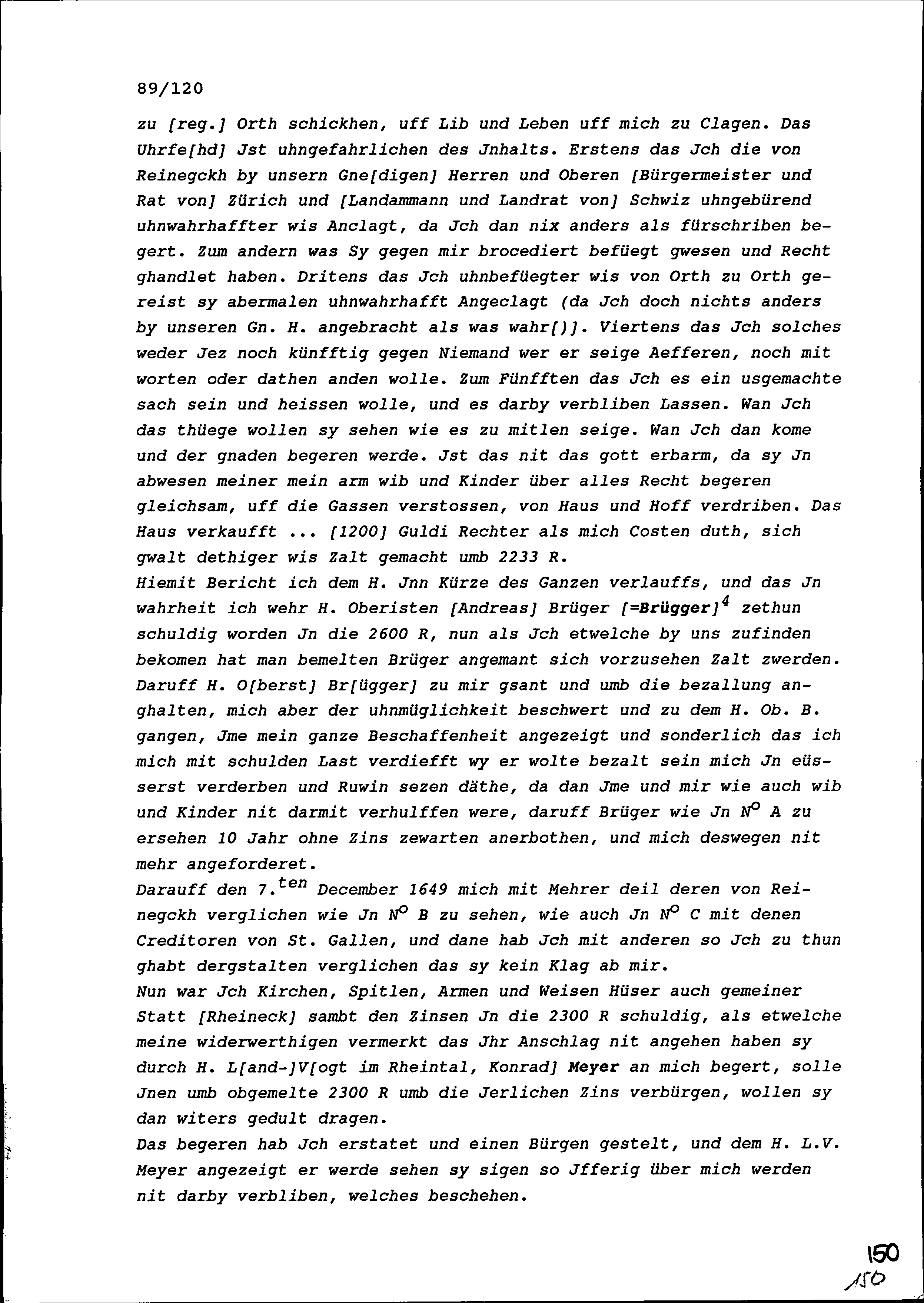 Schreiben von Lorenz Bärlocher, Altstadtschreiber von Rheineck, an Beat II. Zurlauben, Altammann und Stadt- und Amtrat, Zug