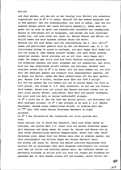 Schreiben von Lorenz Bärlocher, Altstadtschreiber von Rheineck, an Beat II. Zurlauben, Altammann und Stadt- und Amtrat, Zug