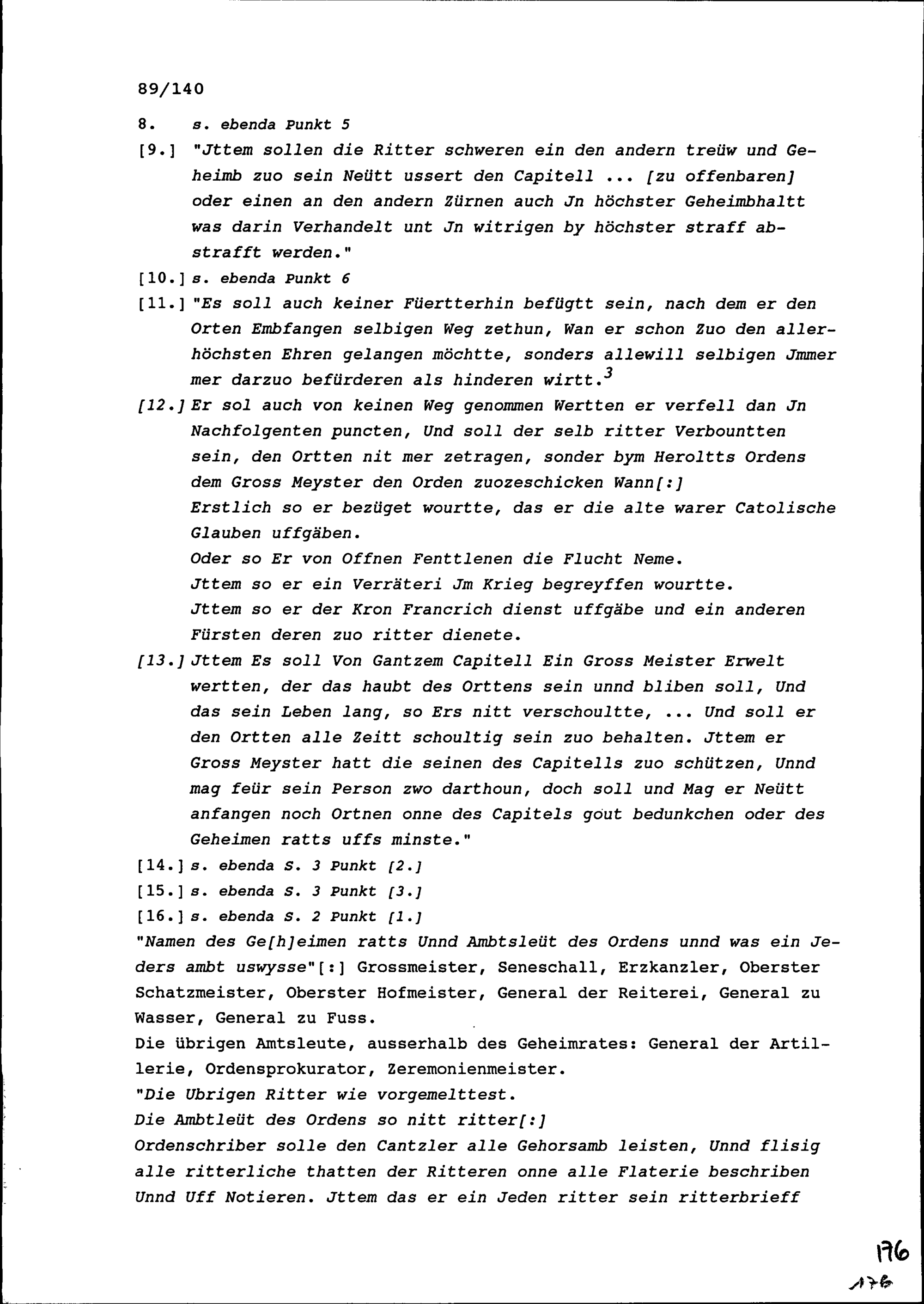Gründungsgeschichte und Satzungen der Ritterschaft von der Runden Tafel, geschrieben von Heinrich I. Zurlauben, Gardeleutnant