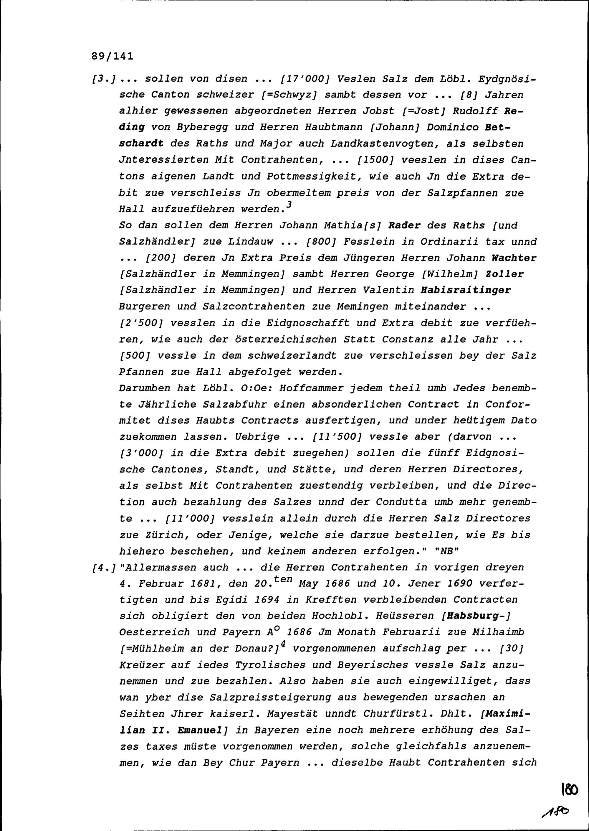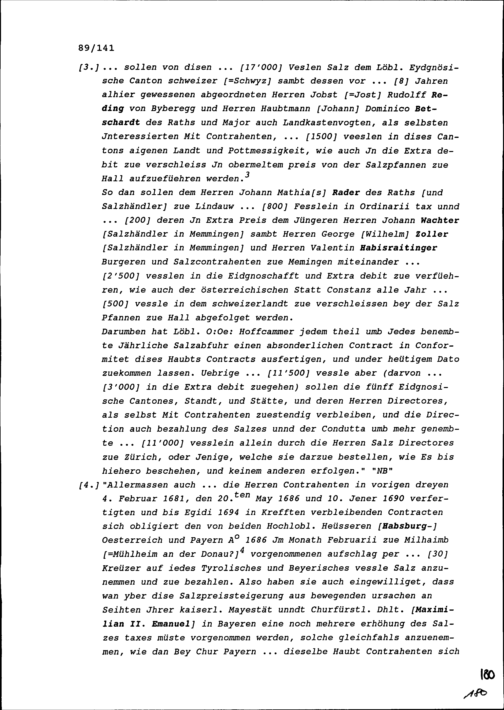 Rezess zwischen dem Salzkonsortium von Zürich, Bern, Luzern, Solothurn und Basel und der vorderösterreichischen Hofkammer in Innsbruck in Sachen Hallisches Salz