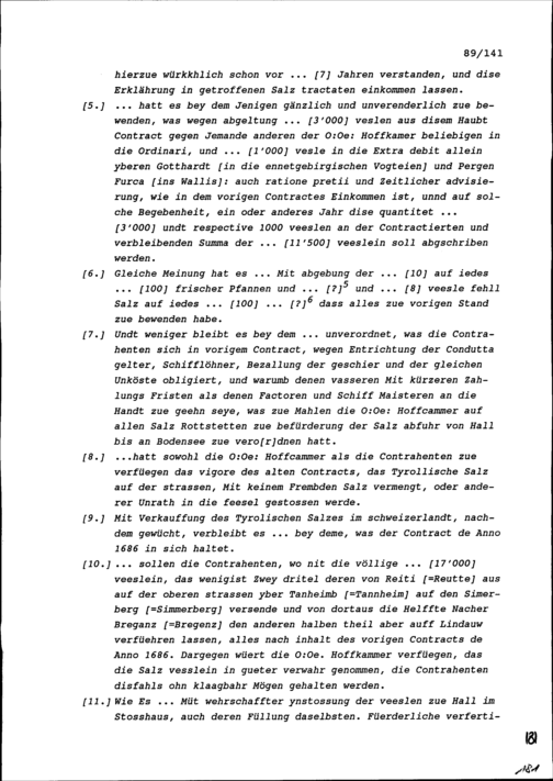 Rezess zwischen dem Salzkonsortium von Zürich, Bern, Luzern, Solothurn und Basel und der vorderösterreichischen Hofkammer in Innsbruck in Sachen Hallisches Salz