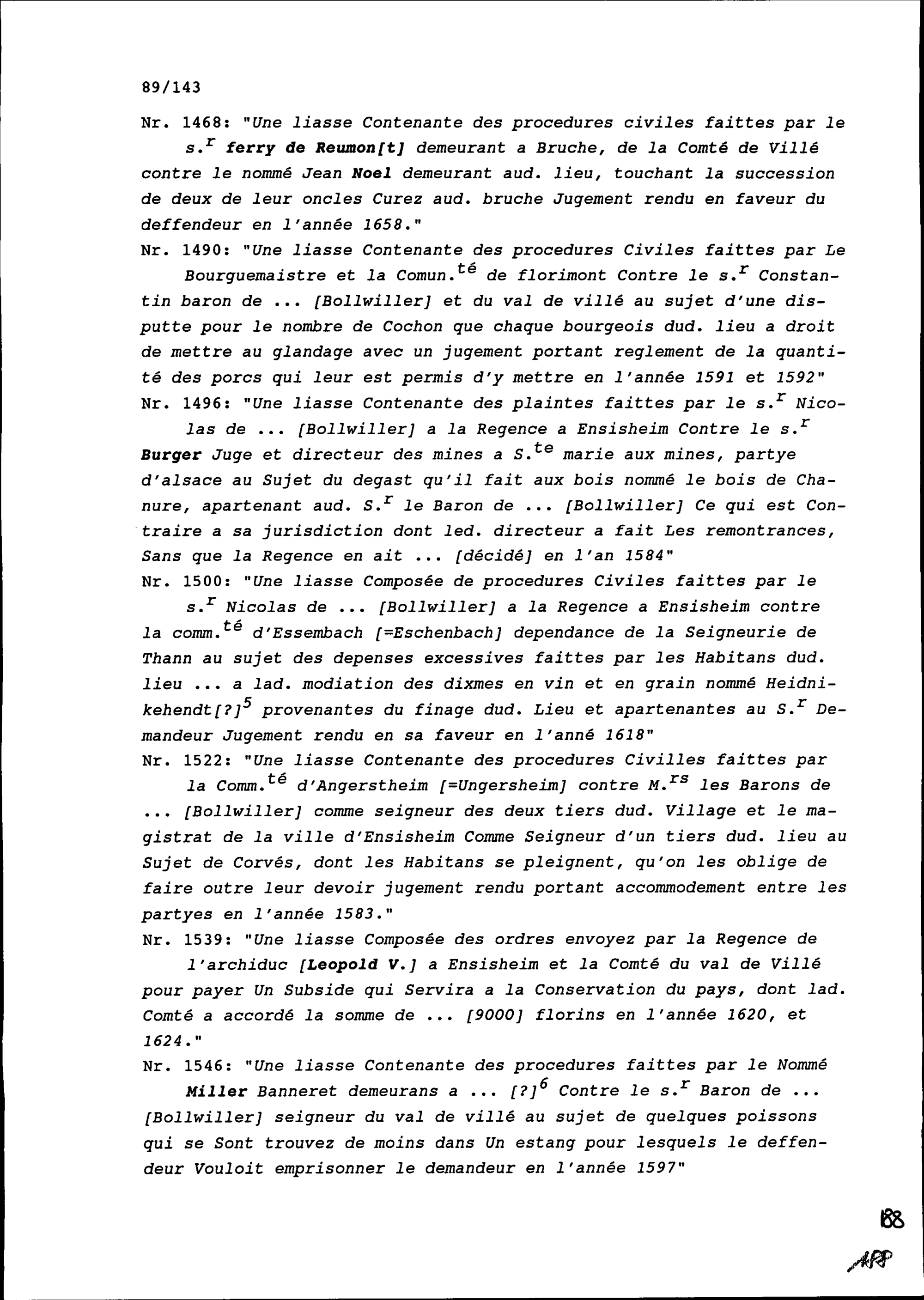 Auszüge aus Aktenbündel der Archive in Innsbruck zu Beat Jakob Zurlauben, zu Bollwiller und zu Fugger