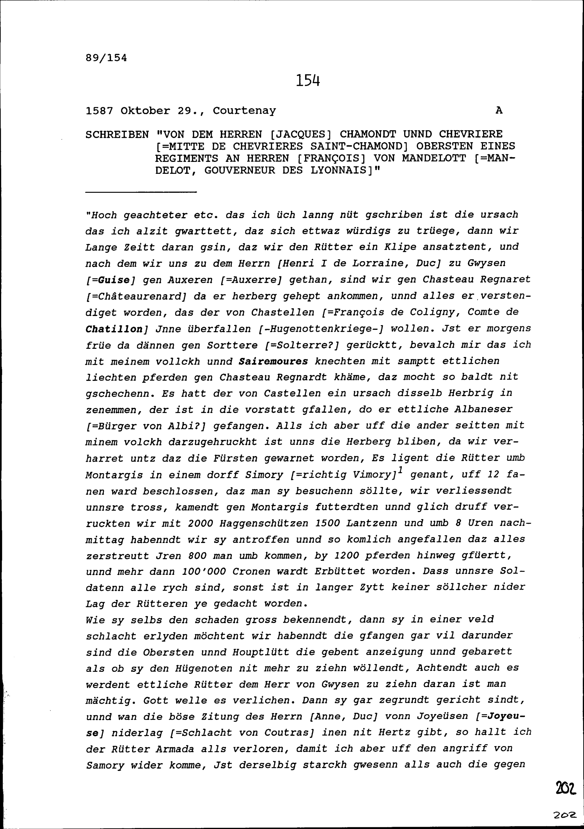 Schreiben von Jacques Chamond und von Mitte de Chevrière Saint-Chamond, Obersten eines Regiments, an François von Mandelot, Gouverneur von Lyon