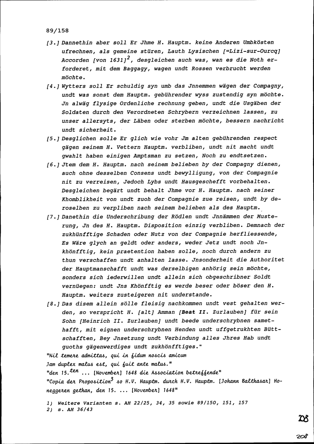 Vergleich zwischen Heinrich I. Zurlauben Gardehauptmann, und Heinrich II. Zurlauben, Gardeleutnant