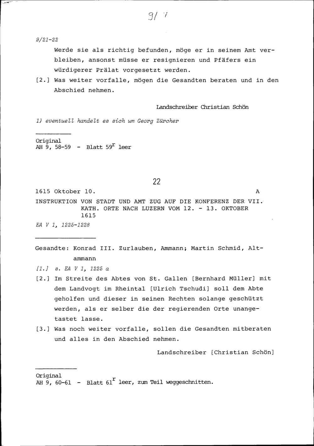Instruktion von Stadt und Amt Zug auf die Konferenz der Sieben Katholischen Orte in Luzern vom 12. bis 13. Oktober 1615