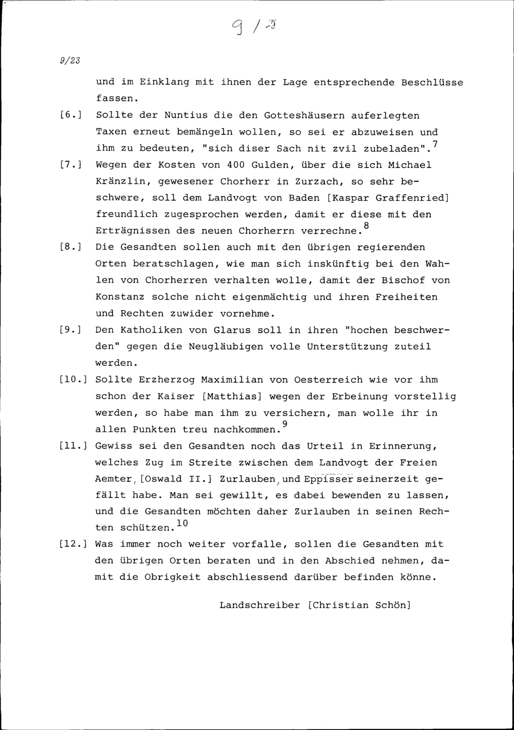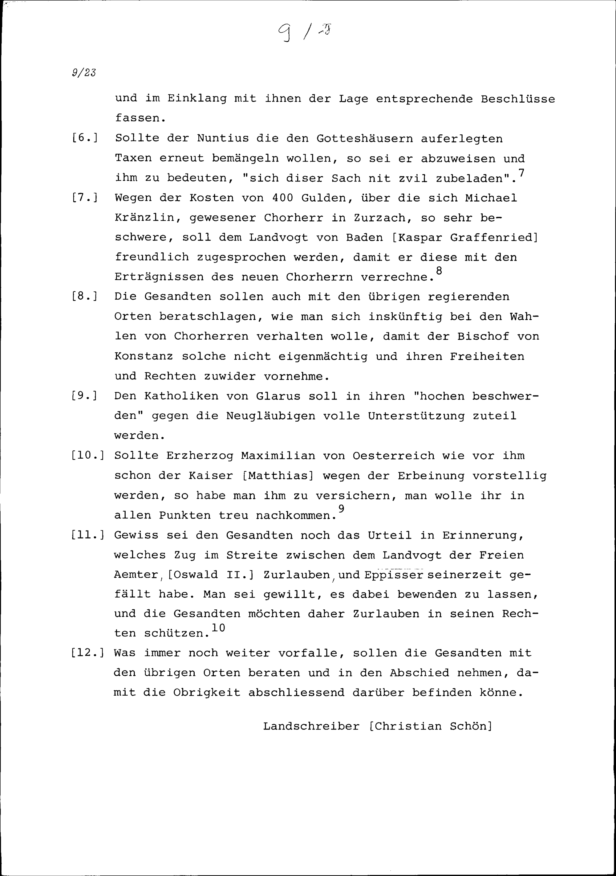Instruktion von Stadt und Amt Zug auf die Tagsatzung in Baden vom 17. April 1616