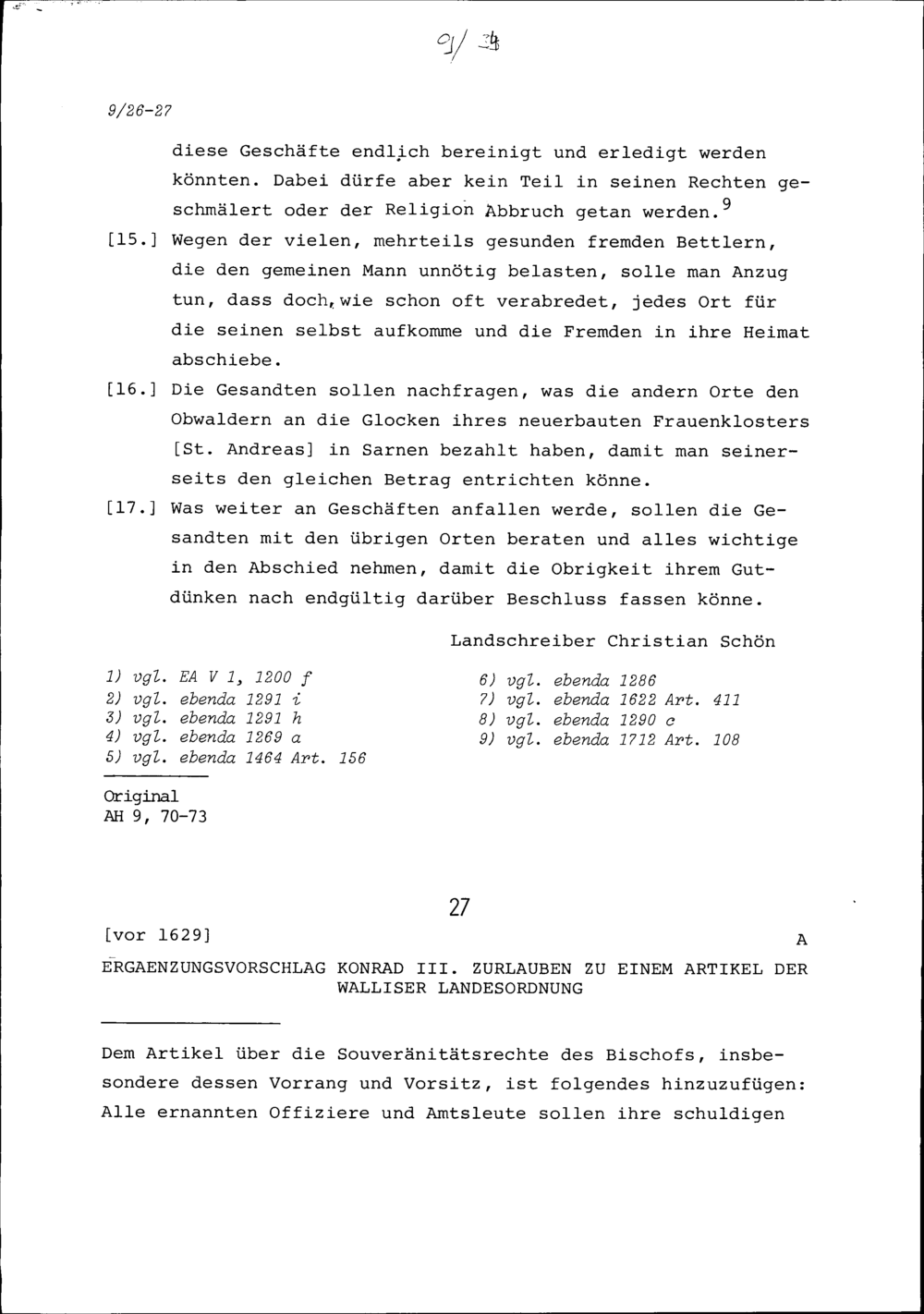 Ergänzungsvorschlag von Konrad III. Zurlauben zu einem Artikel der Walliser Landesordnung