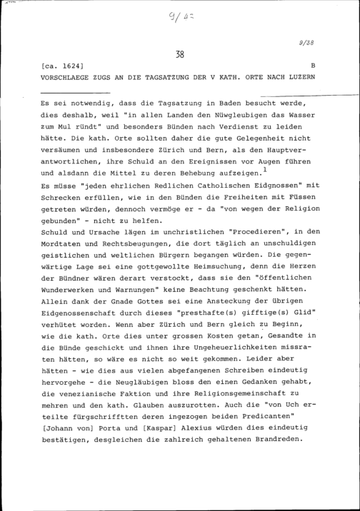 Vorschläge Zugs an die Tagsatzung der Fünf Katholischen Orte in Luzern