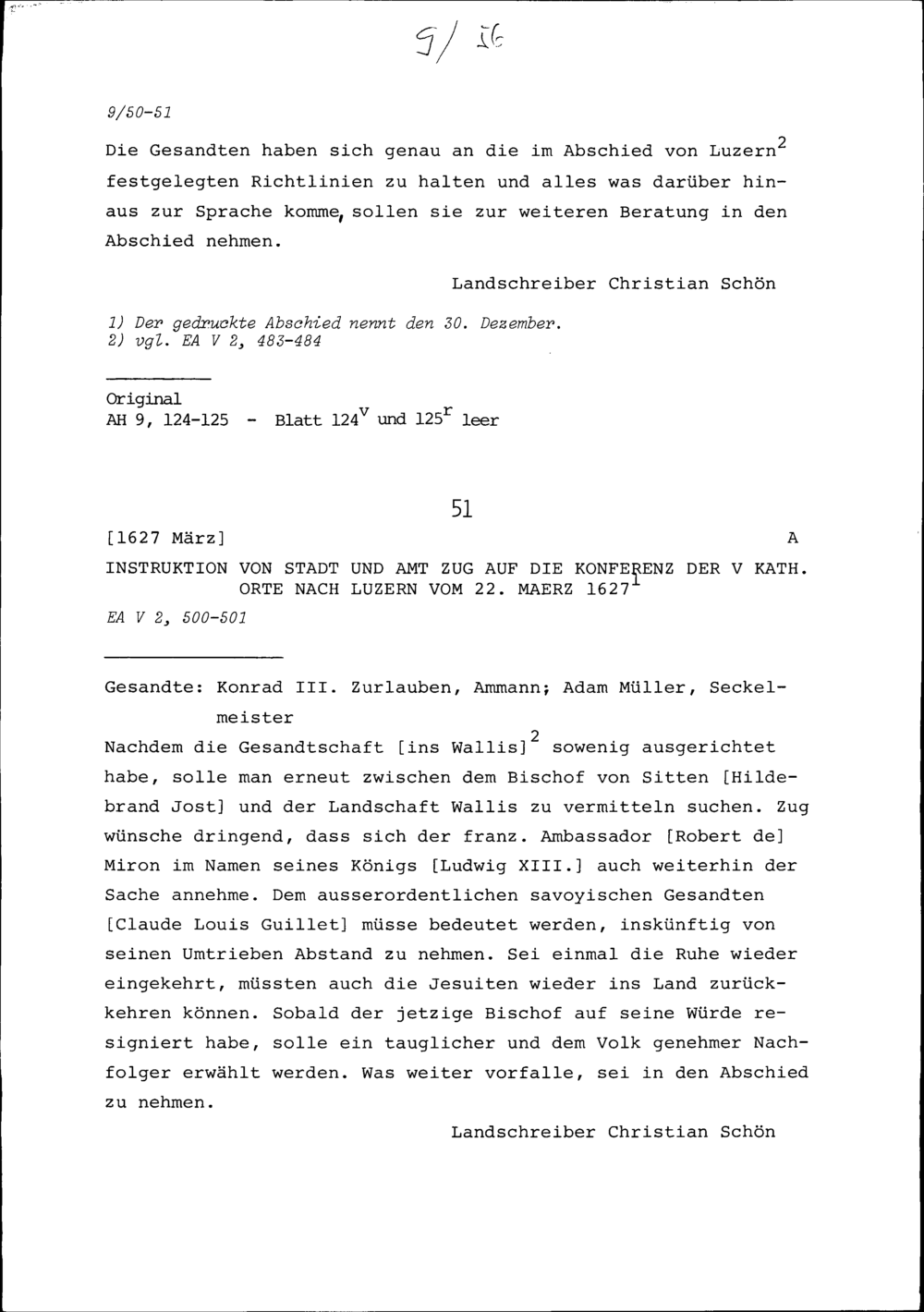 Instruktion von Stadt und Amt Zug auf die Konferenz der Fünf Katholischen Orte in Luzern vom 22. März 1627