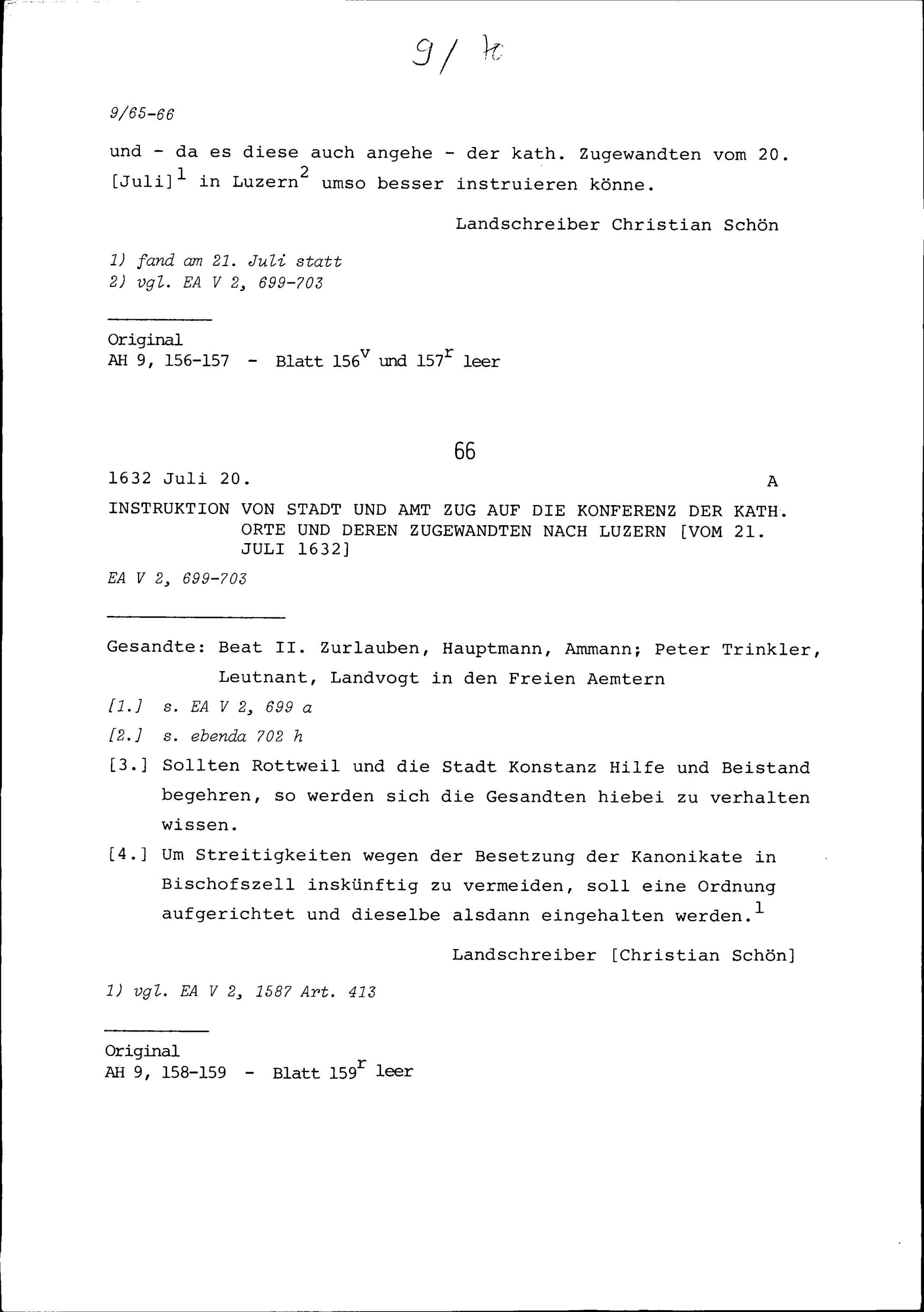 Instruktion von Stadt und Amt Zug auf die Konferenz der Katholischen Orte und deren Zugewandten Orte in Luzern vom 21. Juli 1632