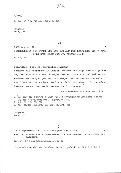 Instruktion von Stadt und Amt Zug auf die Konferenz der Fünf Katholischen Orte in Baden vom 30. August 1632