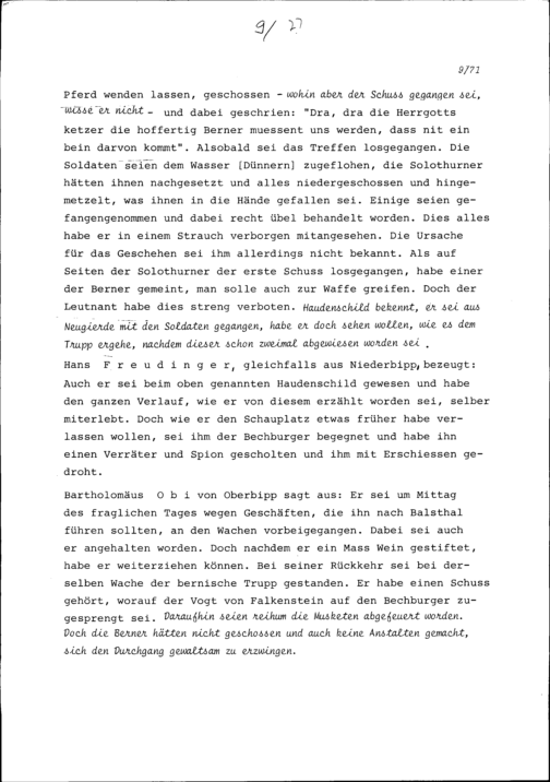 Bericht der Berner Zeugen über die Ereignisse in der Klus bei Balsthal