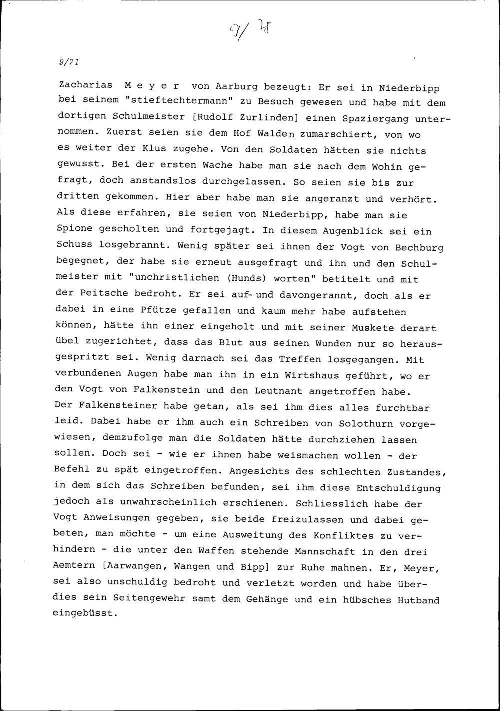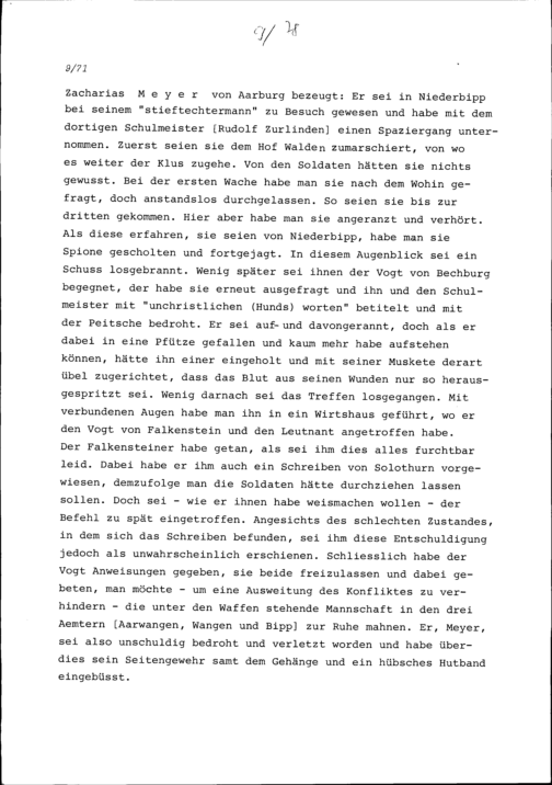Bericht der Berner Zeugen über die Ereignisse in der Klus bei Balsthal