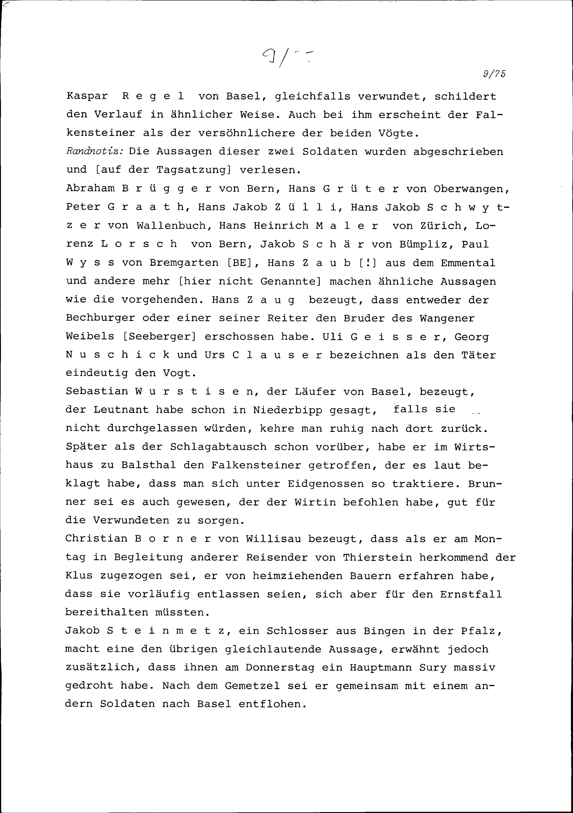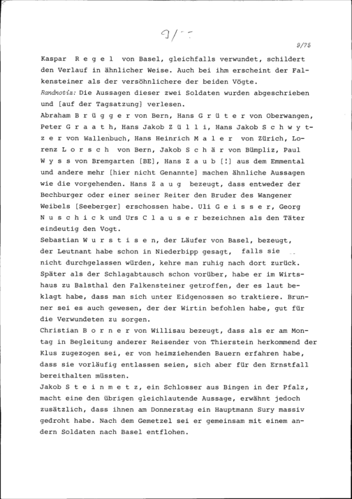 Protokoll der Verhöre im Kluserhandel