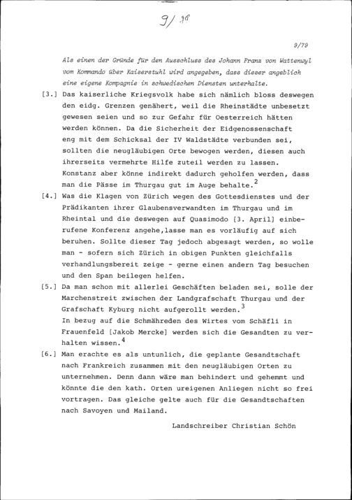 Instruktion von Stadt und Amt Zug auf die Tagsatzung in Baden vom 24. Januar 1633