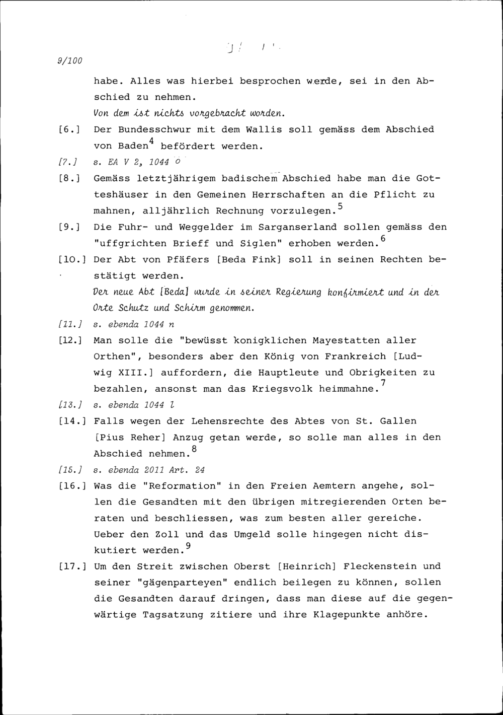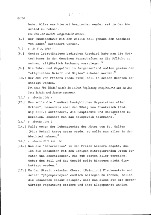 Instruktion von Stadt und Amt Zug auf die Tagsatzung in Baden vom 28. Juni 1637