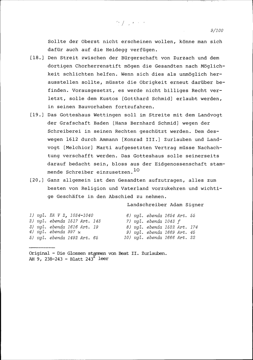 Instruktion von Stadt und Amt Zug auf die Tagsatzung in Baden vom 28. Juni 1637