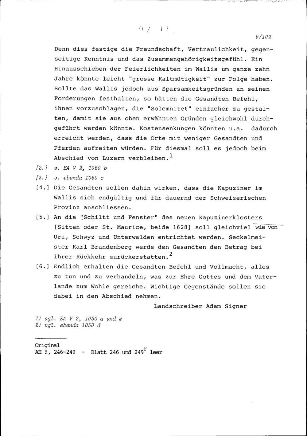 Instruktion von Stadt und Amt Zug für die Beschwörung des Bundes der Sieben Katholischen Orte mit dem Wallis in Sitten am 26. Oktober 1637