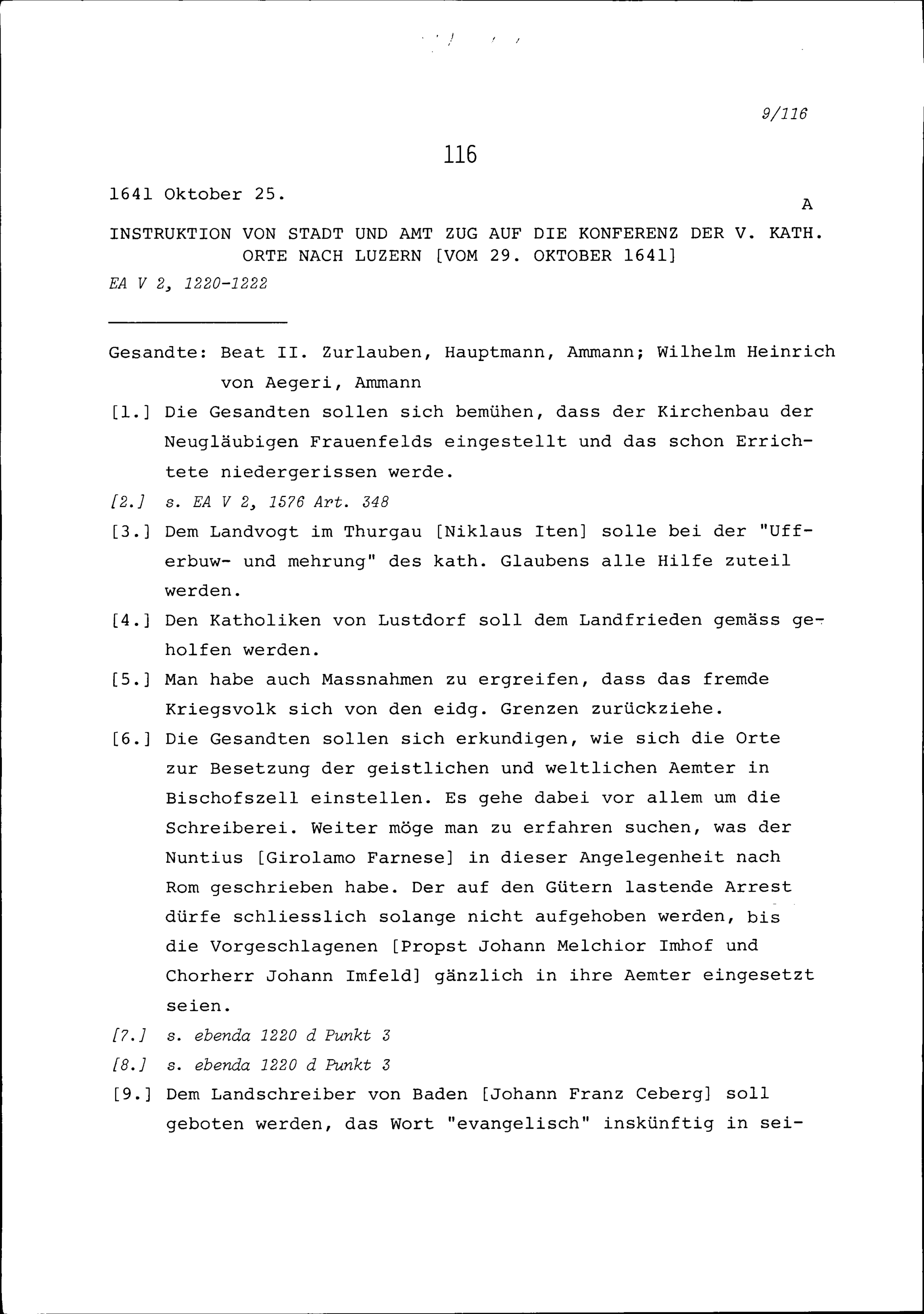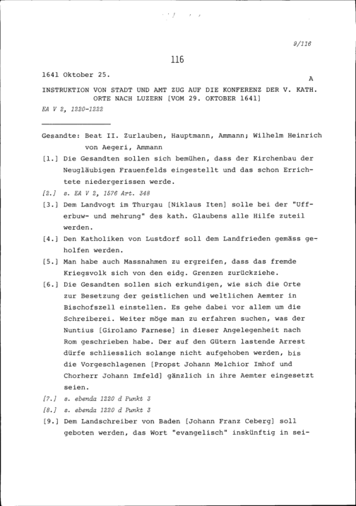Instruktion von Stadt und Amt Zug auf die Konferenz der Fünf Katholischen Orte in Luzern vom 29. Oktober 1641