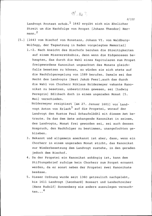 Bericht von Johannes VI. von Waldburg-Wolfegg, Bischof von Konstanz, über die Besetzung...